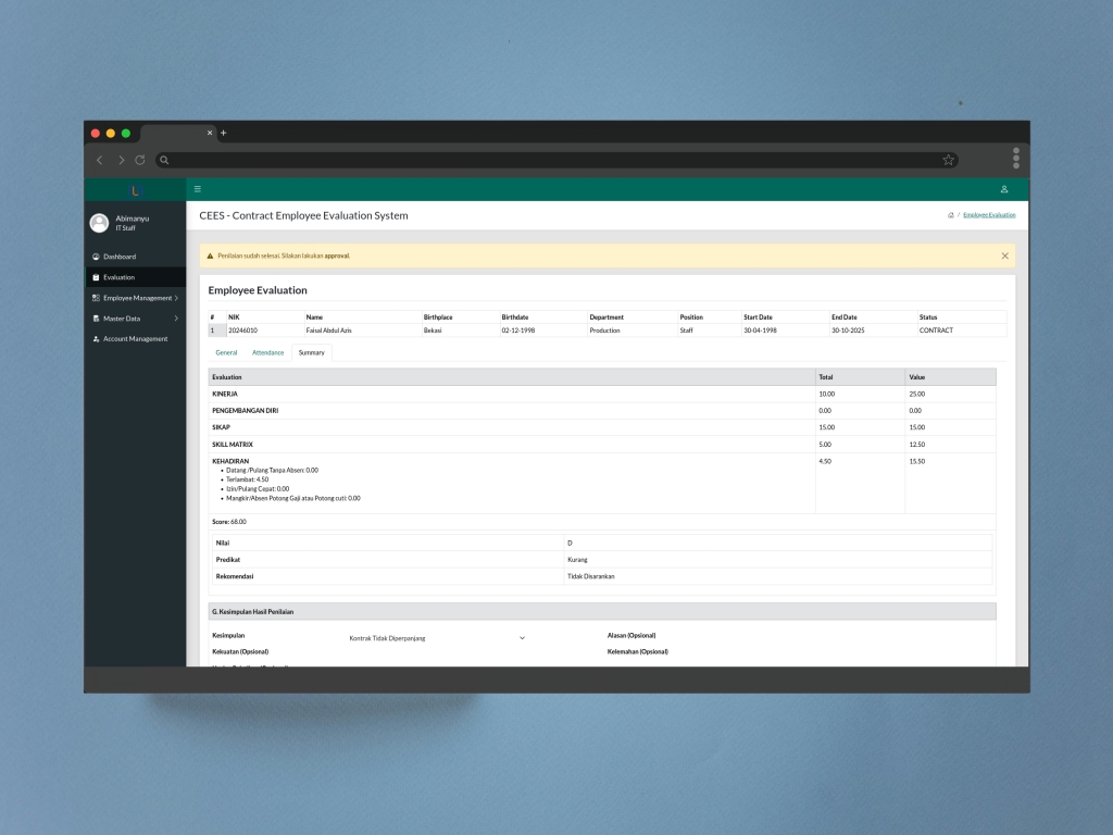 Saya seorang yang berpengalaman sebagai IT Staff dalam pengembangan aplikasi perangkat lunak untuk mendukung digitalisasi dan efisiensi proses operasional perusahaan, serta berpengalaman sebagai Admin Inventory yang bertanggung jawab dalam manajemen operasional warehouse.